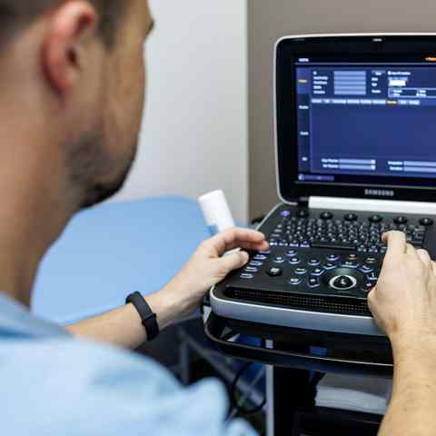 Врач-хирург проводит первичный осмотр, собирает анамнез, оценивает состояние пациента визуально и методом пальпации, проводит УЗИ и назначает дополнительные обследования — например, консультации других специалистов, а также принимает решение об инвазивном и неинвазивном вмешательстве, если это необходимо.